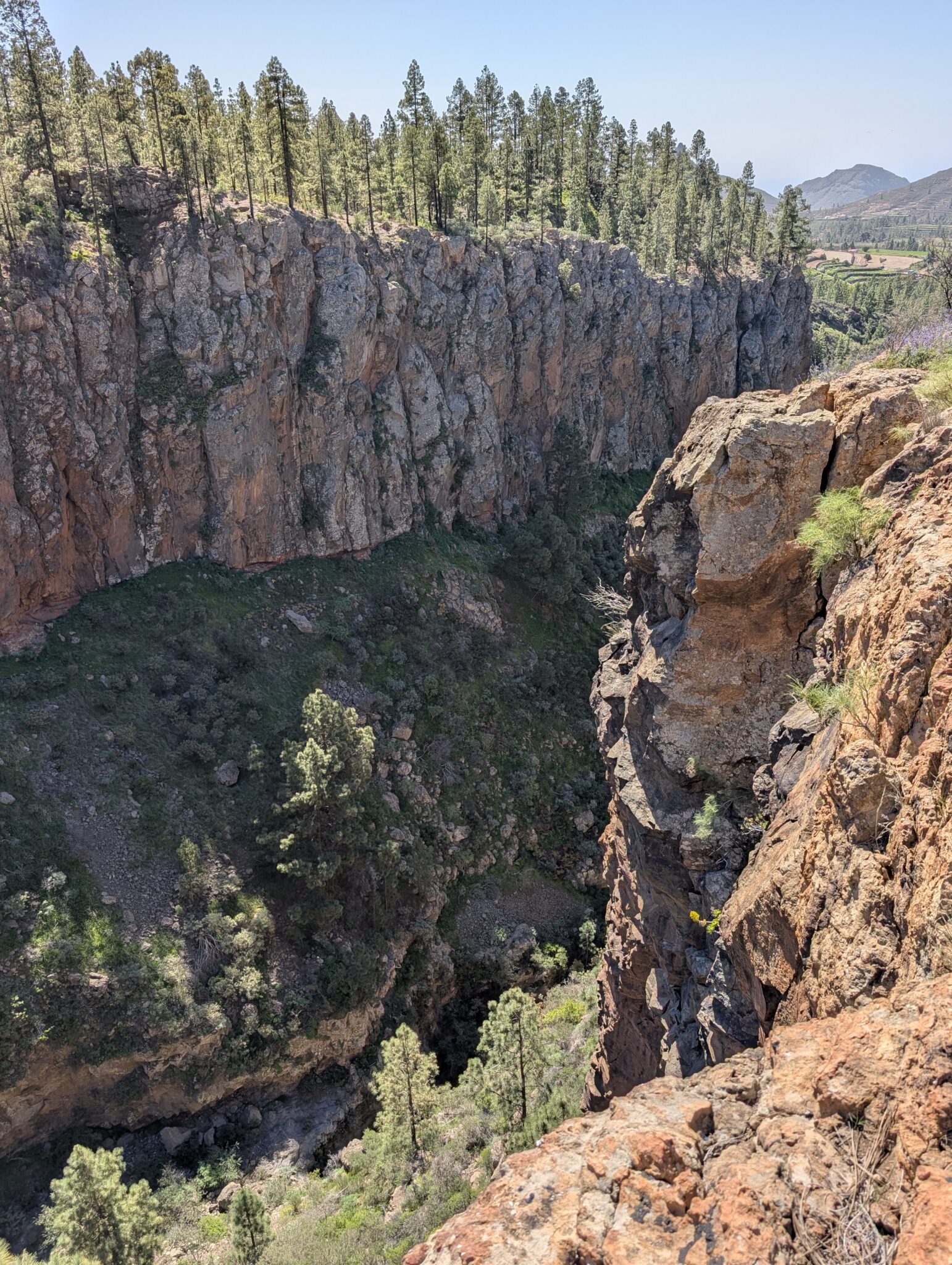 Nach ein paar Kilometern entdecken wir einen schönen Platz oberhalb einer Schlucht, der sich perfekt für die Mittagspause eignet. Begleitet vom vertrauten Gurren der Tauben schneidet Ryan Tomaten und Salami, während ich unsere Zeit auf Teneriffa reflektiere.