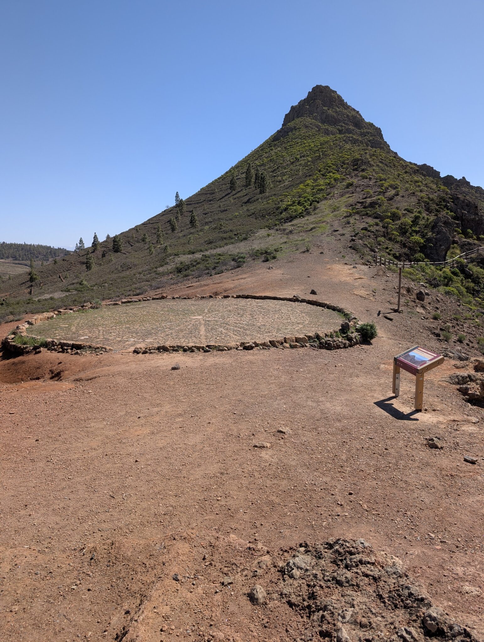 Schließlich erreichen wir den höchsten Punkt des GR 131 auf Teneriffa auf 2.420 Metern und verlassen den Nationalpark. Genau genommen liegt dieser in einem riesigen Krater, aus dem wir jetzt wieder herausgestiegen sind. Ein letzter Blick zurück zum Teide und seine schneelose Südflanke. Nächstes Mal.