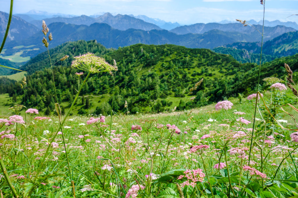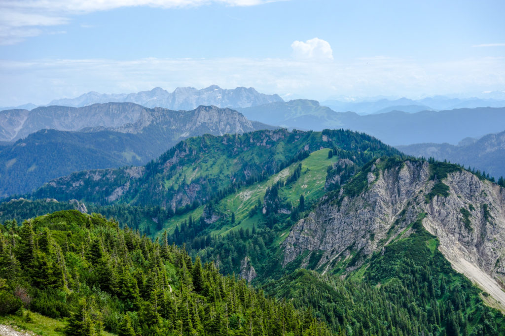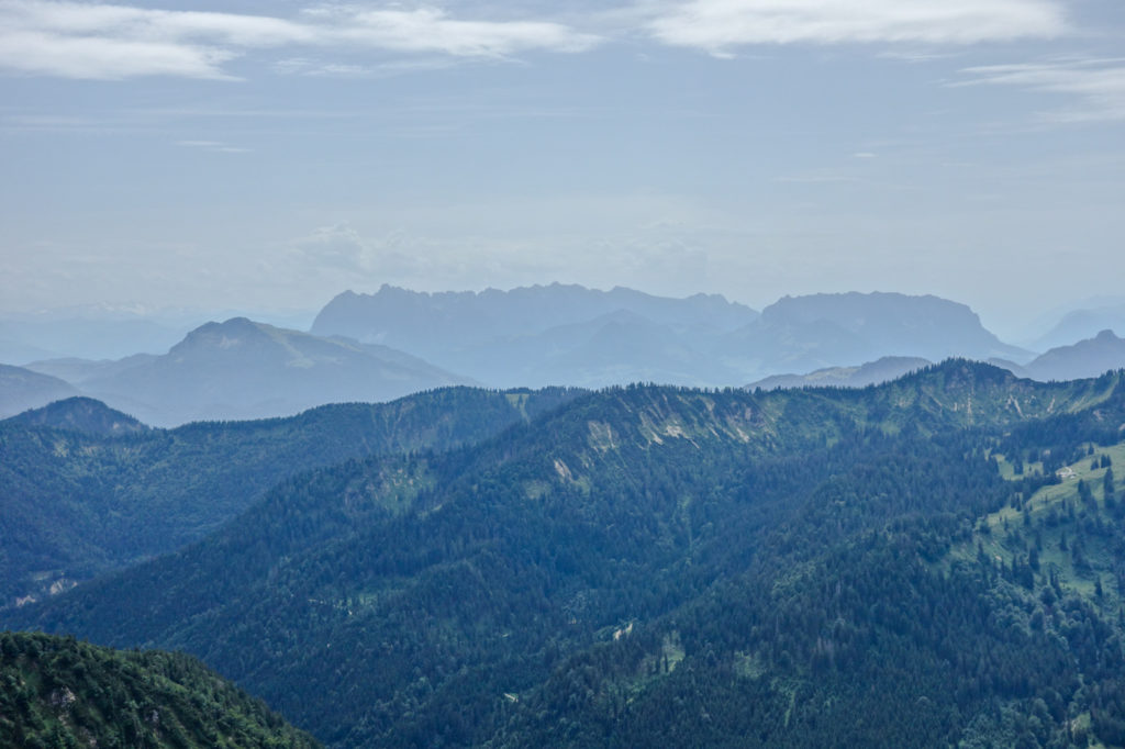 Der Hochfelln ist zwar ein Seilbahn-Gipfel, aber die Aussicht vom Berggipfel ist eine Wanderung wert. Vom Kaiser über Watzmann bishin zu den Hohen Tauern mit Großglockner und Großvenediger liegt einem alles zu Füßen.