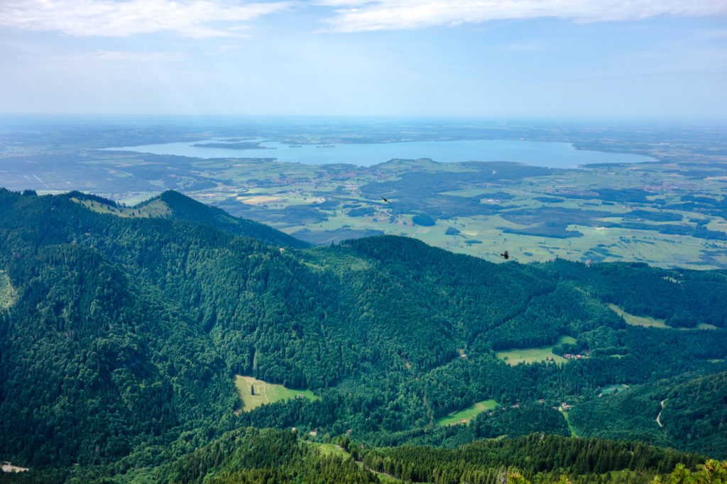 Wir steigen auf dem Anstiegsweg wieder hinunter. Unten angekommen ist der Himmel bereits wieder grau. Das Wetterfenster haben wir offenbar perfekt genutzt. Zu einem Bad im Chiemsee kommt es aufgrund des bald darauf einsetzenden Gewitters allerdings nicht mehr.