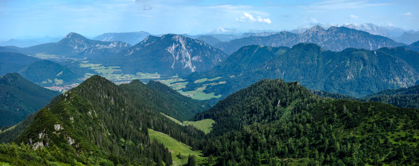 Der Hochfelln ist zwar ein Seilbahn-Gipfel, aber die Aussicht vom Berggipfel ist eine Wanderung wert. Vom Kaiser über Watzmann bishin zu den Hohen Tauern mit Großglockner und Großvenediger liegt einem alles zu Füßen.